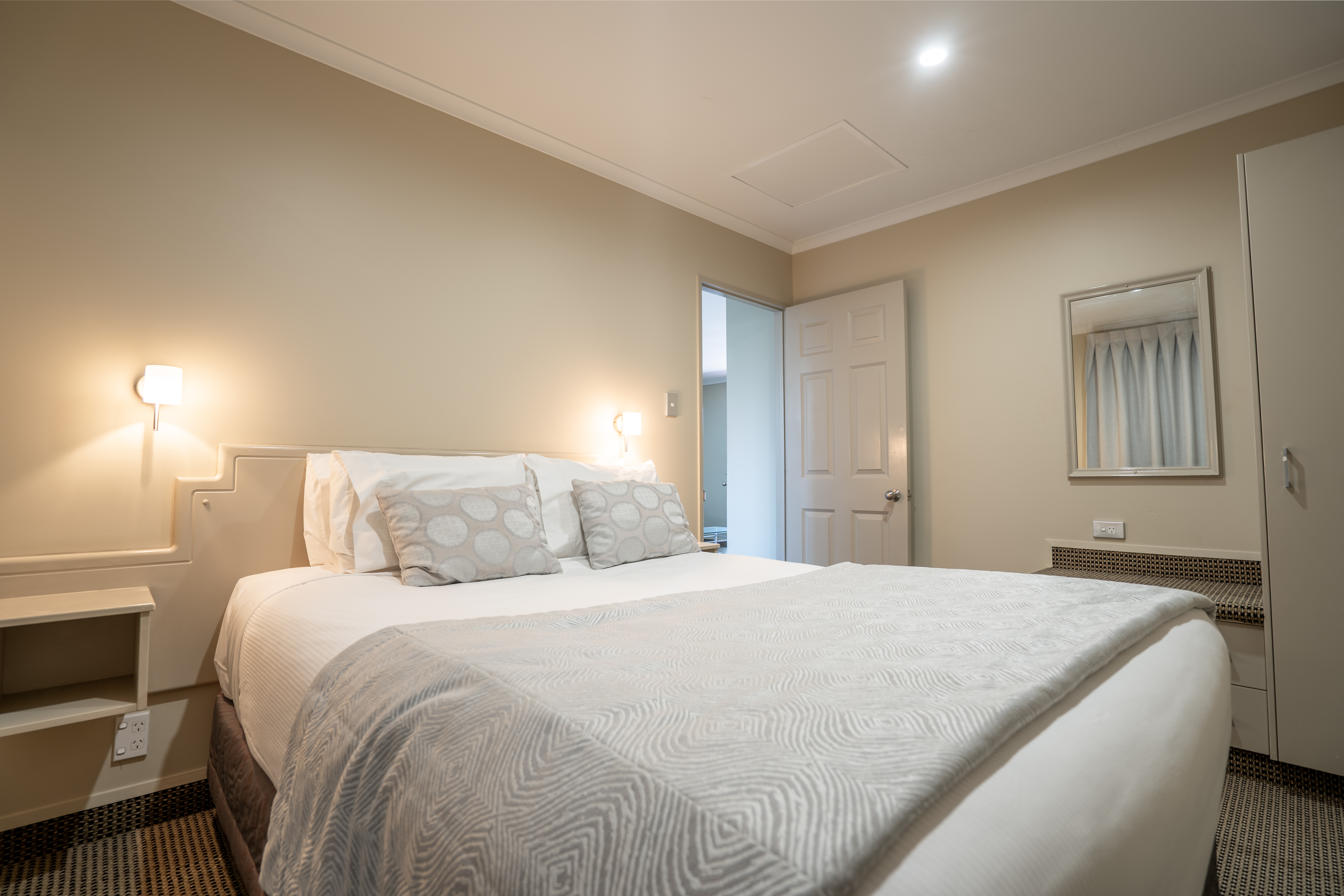 Indulge in this air-conditioned Executive Studio, featuring a super king double bed, triple sheeted with quality linens.