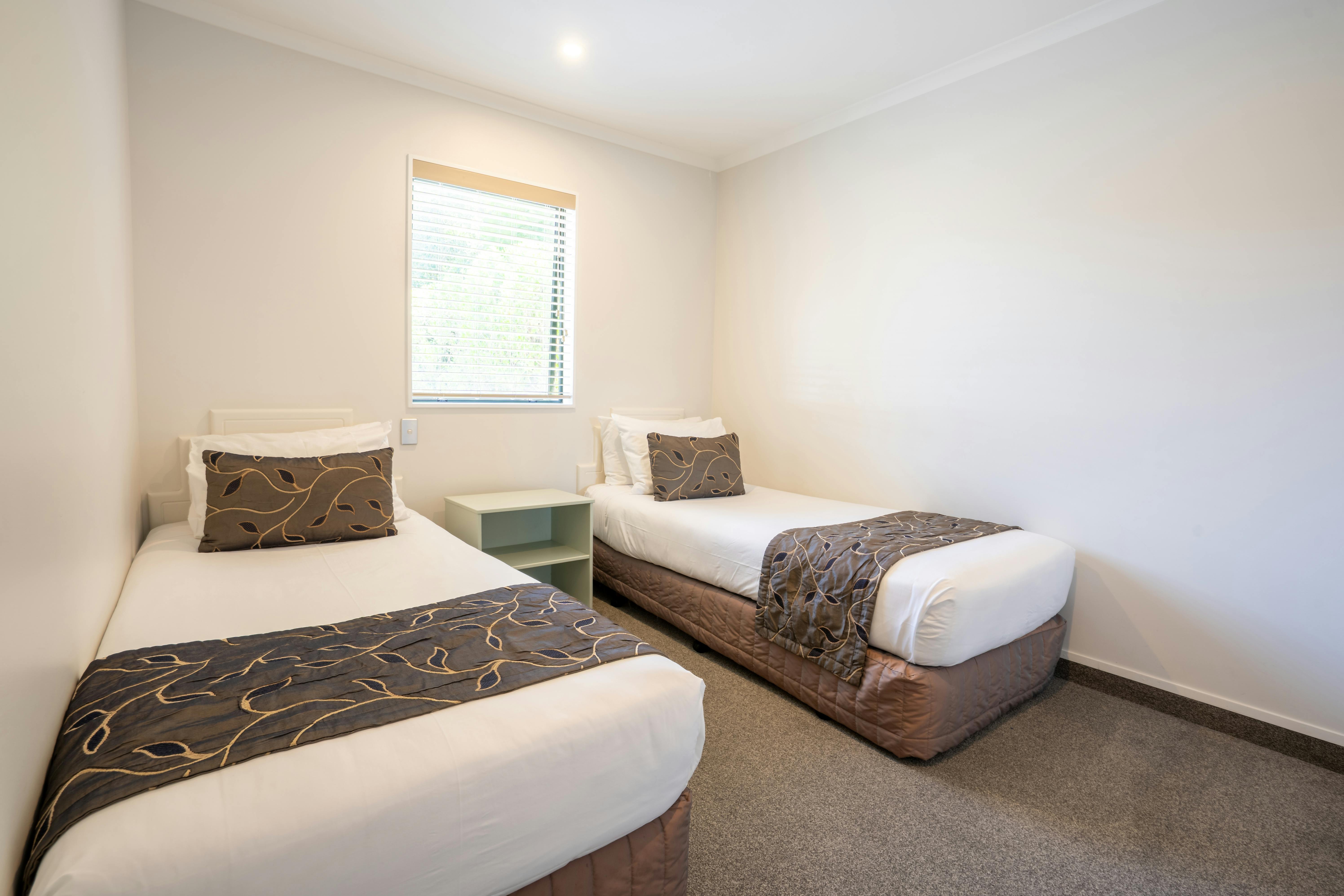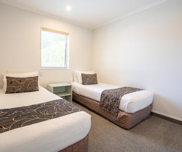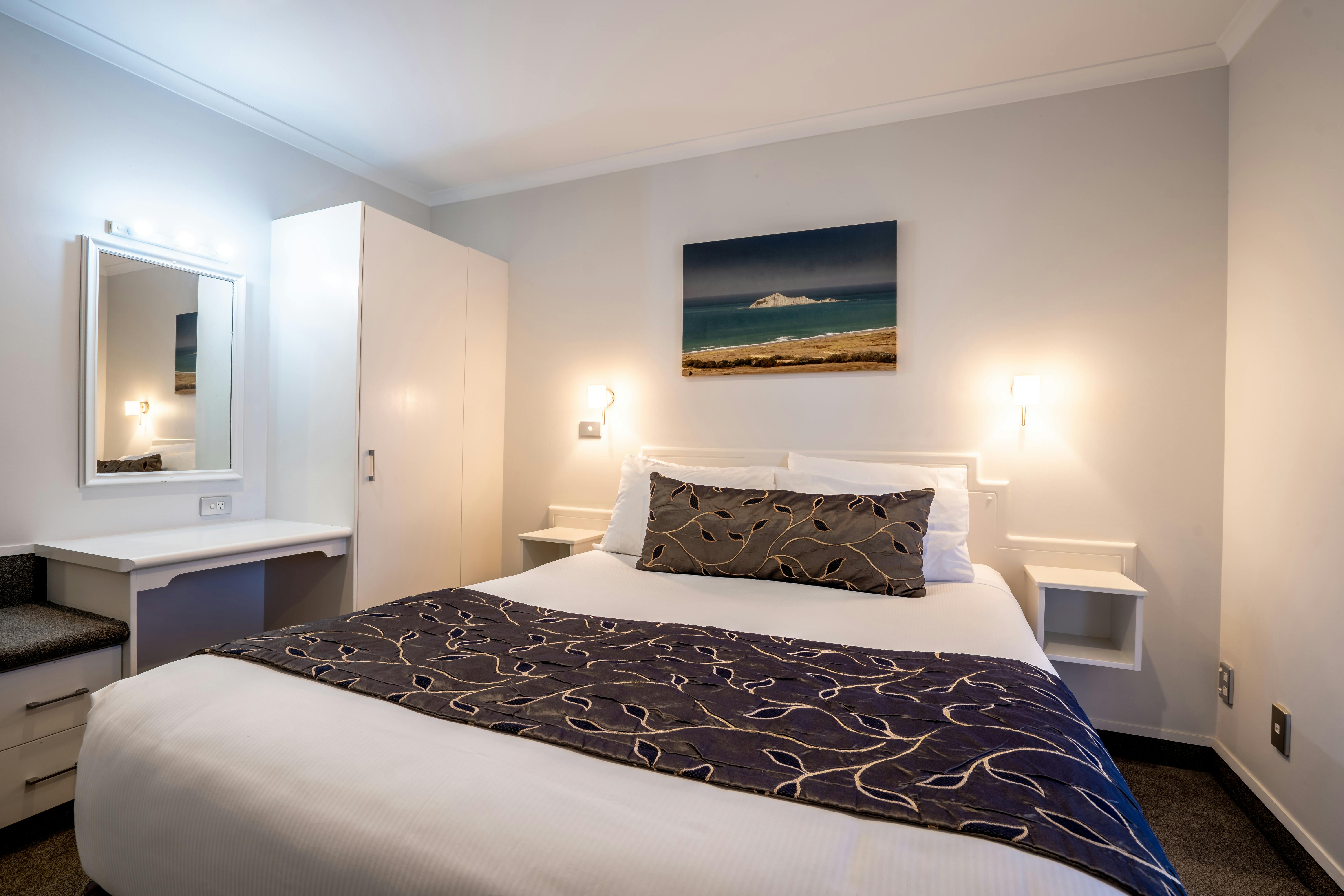 Experience space and comfort in this Executive Two-Bedroom Suite, perfect for families or groups. Each bedroom features a queen-sized double bed, triple sheeted with quality linens, while the living area includes a double fold-down sofa bed for extra guests.
